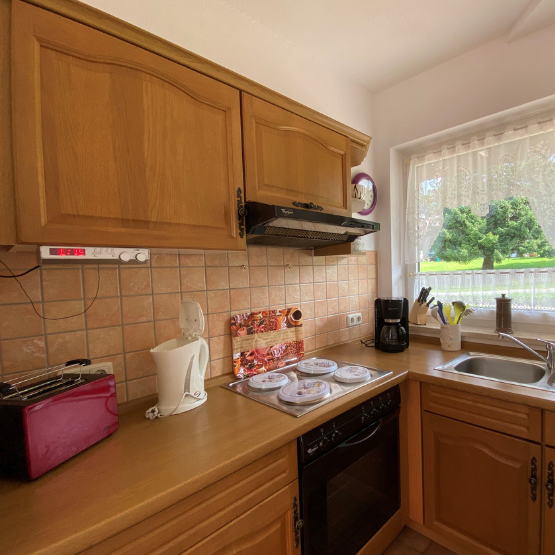 • Voll ausgestattete Küchenzeile – Mit 4-Platten-Herd, Backofen und Mikrowelle für Ihre Lieblingsgerichte.